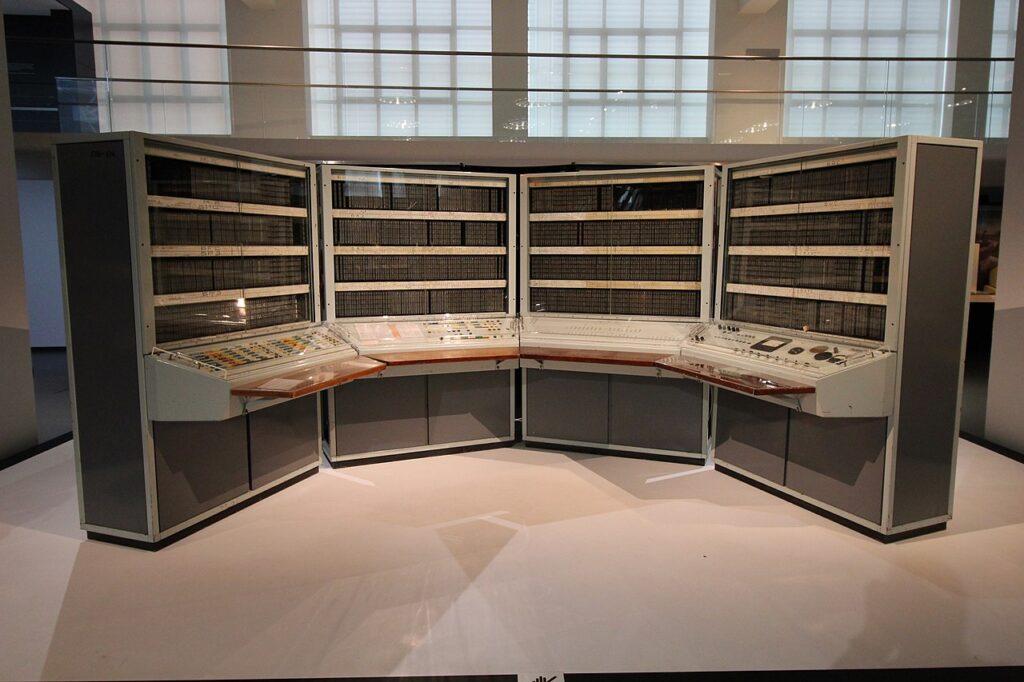 Na zdjęciu: IBM 7151 konsola kontrolna dla 7090 to zaawansowana jednostka sterująca, używana do obsługi komputerów mainframe serii IBM 7090, wykorzystywanych w latach 60. XX wieku do intensywnych obliczeń naukowych i przemysłowych.