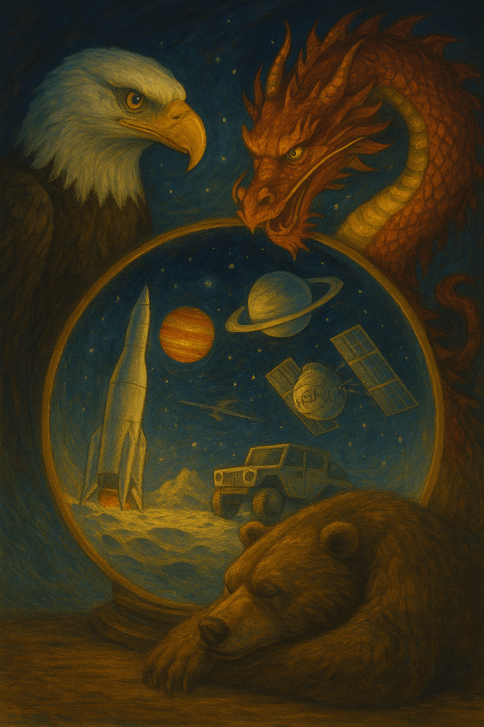 W tej układance Pekin przejął rolę, jaką w czasach zimnej wojny pełniła Moskwa – alternatywnego bieguna wobec amerykańskiego Orła. I wygląda na to, że czeka nas nowa odsłona wyścigu kosmicznego, tylko tym razem zamiast „orła i niedźwiedzia” zobaczymy orła i smoka. Ameryka z planami Artemis, reaktorami księżycowymi i „militaryzacją orbity”. Chiny – z Tiangongiem, ILRS (lub prezentacja programu od strony NASA i całą armią satelitów na orbicie.